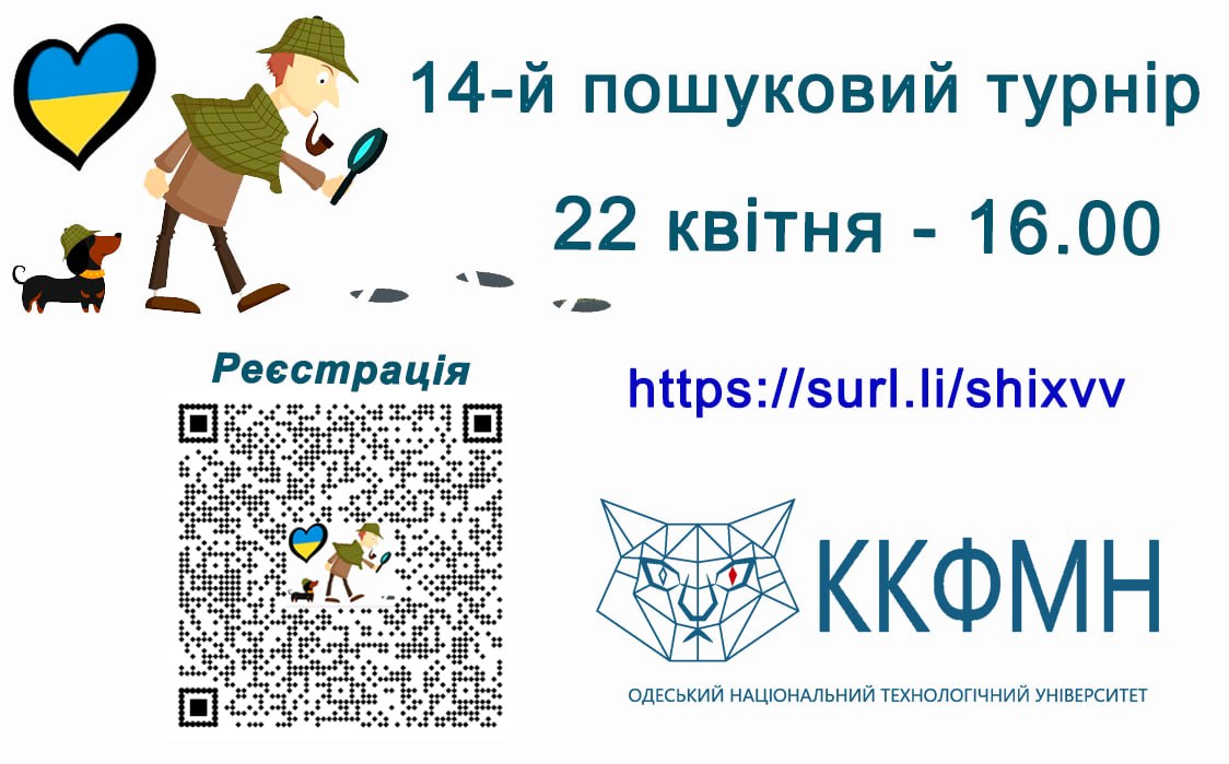 Запрошуємо всіх бажаючих долучитися 22 квітня до традиційного пошукового турніру, який відбудеться в рамках заходів до тижня Навчально-наукового інституту комп’ютерної інженерії, автоматизації, робототехніки та програмування ім. П.М. Платонова ОНТУ. Турнір буде присвячено дослідженню всього невідомого і цікавого, буде багато географічних подорожей, історичних досліджень та пошуків розгадок квестів. Турнір буде відбуватися дистанційно і триватиме 2 години: з 16-ї до 18-ї години.