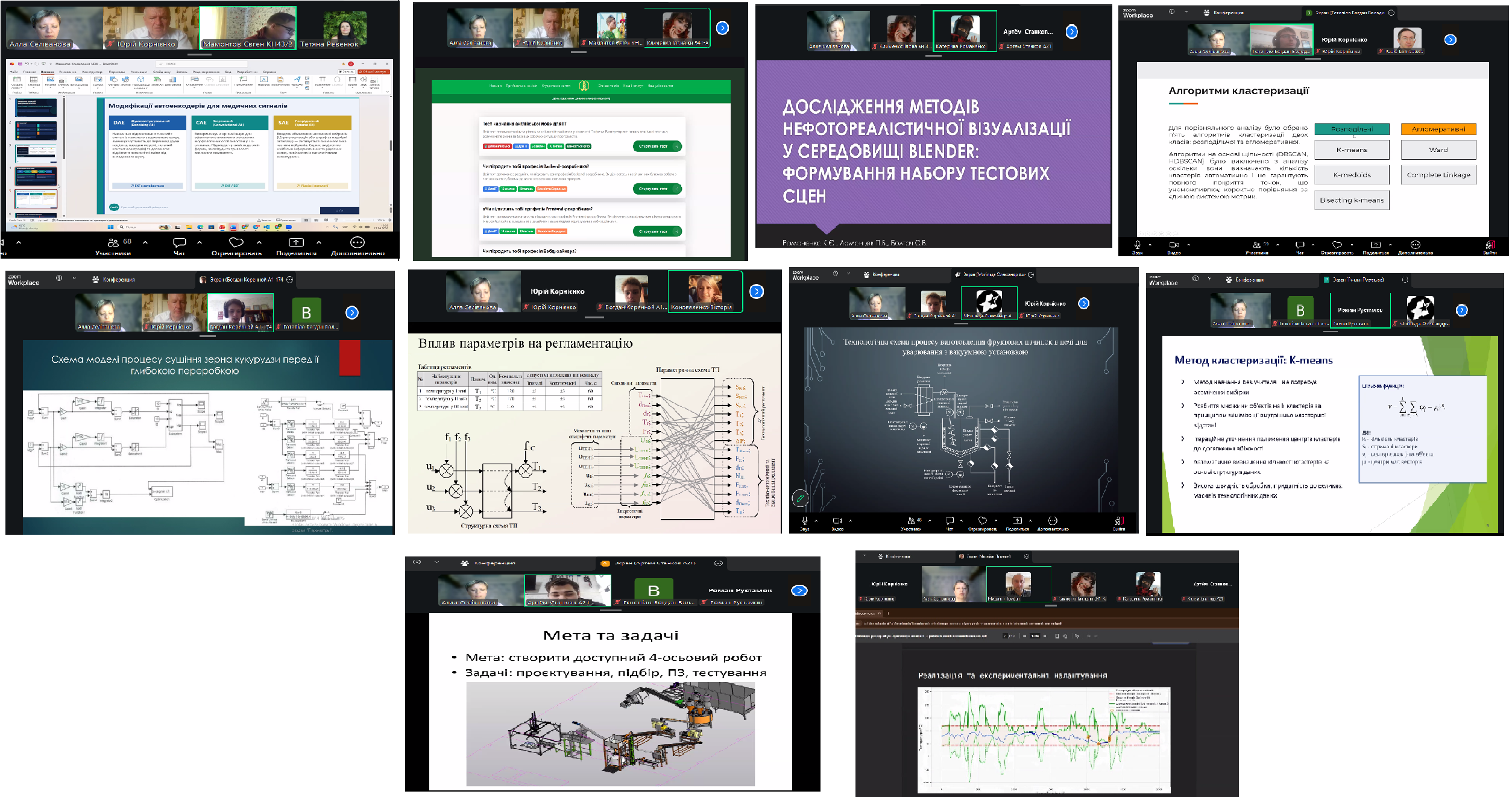 Головою засідань була голова оргкомітету конференції Алла Селіванова, к.т.н., доцент кафедри КФМН, заступником голови – Сергій Котлик, к.т.н., доцент кафедри КФМН, модератором відео конференції – Юрій Корнієнко, к.ф-м.н., доцент кафедри КФМН.