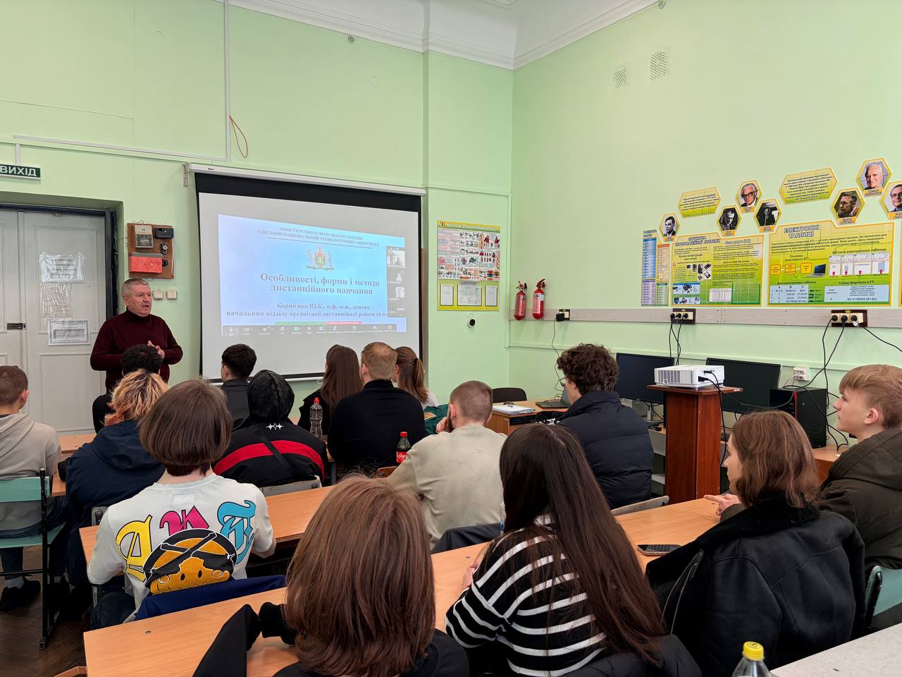 12 березня 2026 року доцент кафедри Комп’ютерних та фізико-математичних наук, начальник відділу організації дистанційної роботи та навчання Корнієнко Ю.К. зустрівся зі здобувачами освіти фахового коледжу Промислової автоматики та інформаційних технологій. Формат проведення був змішаний, студенти та деякі викладачі були присутні як в аудиторії коледжу, так і онлайн. Розмова була присвячена літній вступній кампанії в ОНТУ. Познайомив зі структурою університету, окремо виділив Навчально-науковий інститут комп’ютерної інженерії, автоматизації, робототехніки та програмування ім.П.М.Платонова. Всіх запросив після закінчення коледжу вступати до ОНТУ, розповів про особливості вступу 2026 року. Крім того, провів лекцію на тему: «Особливості, форми і методи дистанційного навчання». Відповідав на численні запитання. Чи можна буде розвивати тему дипломної роботи коледжу при навчанні в ОНТУ? Чи до всіх інститутів в ОНТУ можна вступати? Який формат навчання? Та багато інших. Запросив також взяти участь в роботі наукової конференції «Стан, досягнення і перспективи інформаційних систем і технологій – 2026». Обстановка, як завжди в цьому коледжі, була дуже теплою. Наприкінці побажав успішного закінчення коледжу і захисту дипломних робіт.